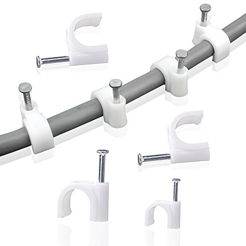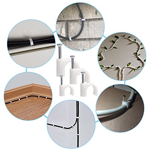 AUSTOR 600 Pezzi Fermacavo con Chiodo Bianco in 4mm 6mm 8mm 10mm Cable Clamp per Cavo Elettrico, Ethernet, Piatto, Cavo Coassiale, RG6, RG59, CAT6, RJ45 o Altro Cavo