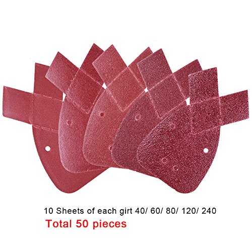AUSTOR 50 Pezzi Fogli Abrasivi per Levigatrice Mouse 10x 40/60/ 80/120/ 240 fiocchi d'avena per Black and Decker Detail Palm Levigatrice