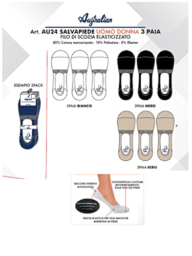 Australian 3 Paia Calzini Fantasmini Unisex Cotone Filo di scozia Elasticizzato Salvapiede Calze con Gel Antiscivolo (43/46, Bianco)