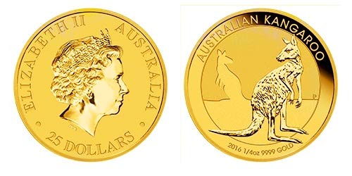 Australian Gold Nugget con canguro e profilo di Elisabetta II, monete d'oro da 1/4 di oncia (versione in lingua inglese)