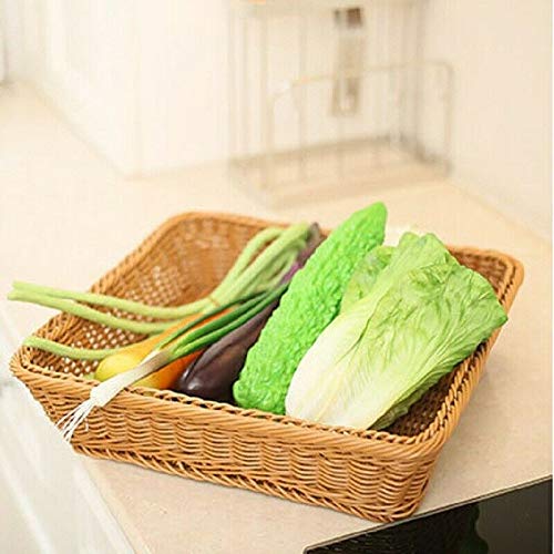 Ausuky Cestino rettangolare fatto a mano in rattan di plastica porta pane in vimini scatola di frutta dado di stoccaggio (BROWN, S)