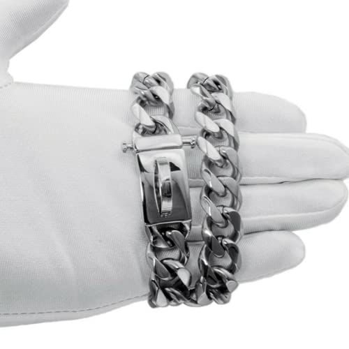 AUSUKY Collare per cani medio in acciaio inossidabile massiccio cubano, collare per cani (argento, 55,9 cm per collo di cane da 49,8-54,6 cm)
