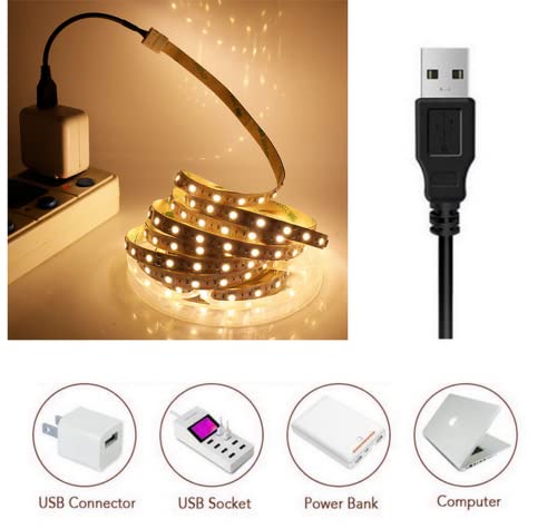 Ausuky, Striscia LED luminosa USB, 5 V, con luce bianca, per retroilluminazione del televisore, autoadesiva e flessibile (luce bianca calda, 5 m, 300 LED)