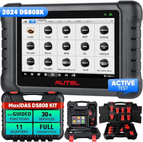 【Livello OE Tutta la Diagnosi di Sistema】Autel DS808K è in grado di diagnosticare tutti i moduli auto disponibili come motore/ABS/SRS/SAS/EPB/A/C ecc., per leggere/cancellare codici, visualizzare dati in tempo reale, dati di fermo immagine, informazioni ECU, VIN automatico, test attivo, ecc. Con £ 150 completi di 11 adattatori OBDII non standard, lo scanner diagnostico automatico DS808K 2024 può diagnosticare più modelli di veicoli fino al 1996-2024 .