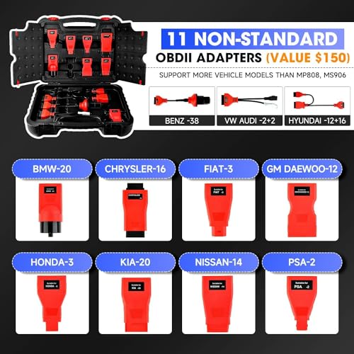 【MULTI-LINGUA, 11 ADATTATORI】 1. Autel MaxiDAS DS808K supporta l'italiano, puoi inviare il S/N (sul retro del dispositivo) a auteldirect@outlook.com per cambiare la lingua. 2. Autel DS808K viene fornito con 11 adattatori. Nota: questa versione contiene la spina Chrysler 16, ma nessuna spina Benz 14. È normale avere spazio nella scatola.3. In caso di domande, contattare auteldirect@outlook.com.