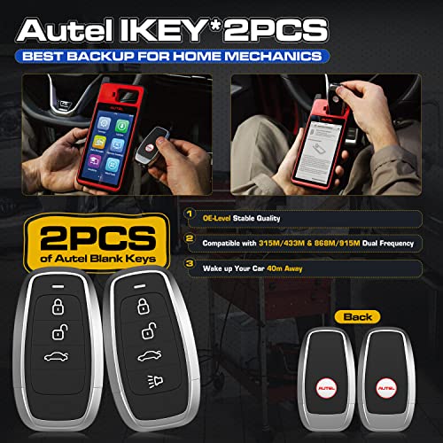 【Programmatore Autel KM100 (X) Più Recente 2024, Esattamente Uguale a KM100】Kit Strumenti per Generatore Chiavi KM100X, è nato immobilizzatore più professionale! KM100X deve essere scelta migliore per sue funzioni uniche: generazione chiavi universali anni '60 lettura/clone/modifica Ch~ip IMMO completo VIN automatico/scansione automatica 10+ funzioni hot. Con interfaccia wireless MaxiVCI V200 e Autel I~KEY vuoto 2 pezzi, avvia direttamente apprendimento chiavi IMMO dopo generazione chiave.
