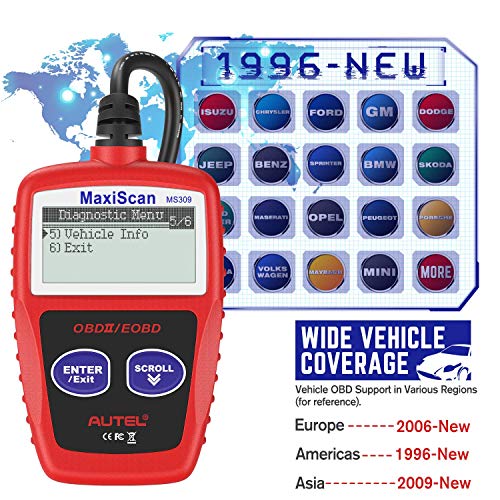 ★ 【FACILE FUNZIONAMENTO】: Con soli 2 pulsanti, il lettore di codici Autel MaxiScan MS309 CAN / EOBD / OBDII è uno degli scanner per auto facili da usare sul mercato. Scanner portatile, più potente e conveniente. Attenzione: la lingua di Autel MS309 è solo in inglese (scusate, ma non sono disponibili altre lingue)