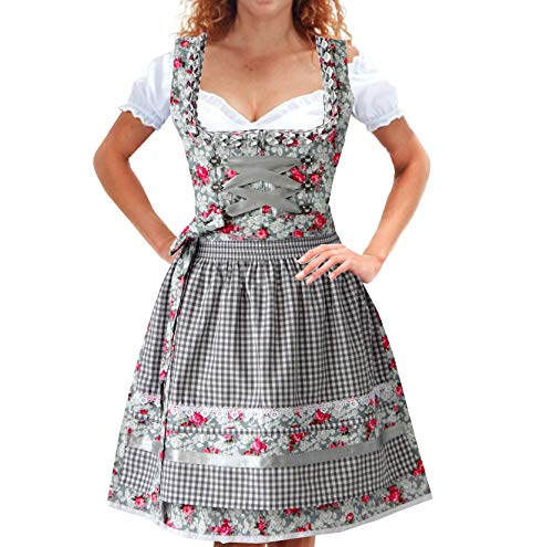 Autentico Vestito Bavarese Tedesco Dirndl Set 3 Pezzi Costume Tipico Tirolese per Oktoberfest Carnevale Donna