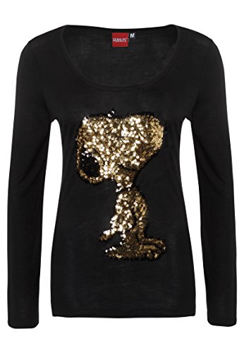 Peanut Style: scegli il tuo preferito. Woodstock o Snoopy? Questo a maniche lunghe ha entrambi, in fantastici glitter e paillettes.