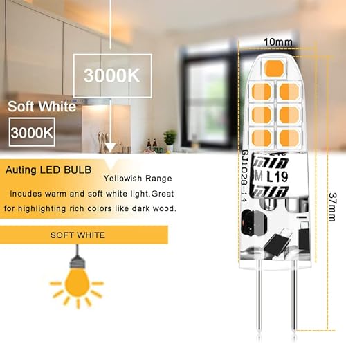 Facile da Installare: le lampadine a LED G4 da 2W non sono dimmerabili, non utilizzare con dimmer. Base standard di lampadine G4, facile e veloce da installare. Dimensioni: 37 * 10mm, si prega di controllare le dimensioni della lampadina prima di acquistare.