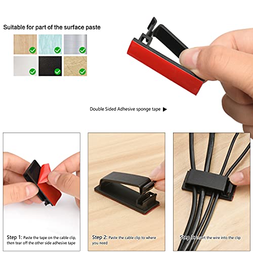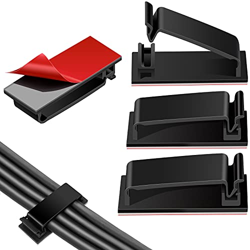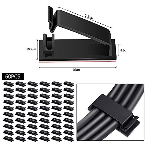 Clip autoadesive per la gestione dei cavi, fermacavi, 60 pezzi, colore: nero