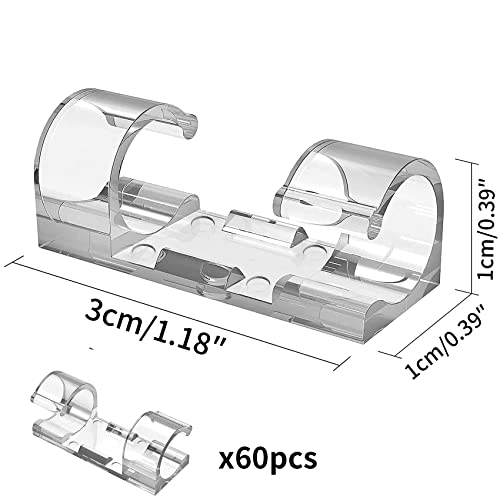 Autoadesivo Clip Cavo Fermacavi Supporto 60 Pezzi Fermacavo Clip Adesivi Muro Scrivania Cavo Gestione Organizzatore Cavi di TV/PC/USB/Mouse per Casa o Ufficio,Trasparente