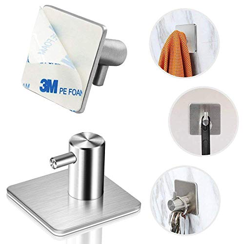 Autoadesivo ganci, finitura spazzolata 304 in acciaio INOX bastone gancio da parete per cucina bagno ufficio e Lavatory Closets, acqua e a prova di ruggine asciugamano cappotto chiave gancio (confezione da 4)...