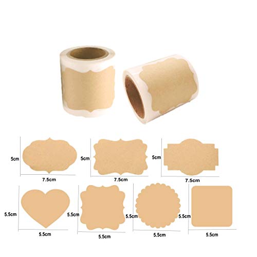 Il pacchetto contiene: 250x etichette di carta kraft, questa etichetta con 2 rotoli e hanno 7 tipi di forma, si incontrerà le tue diverse esigenze.