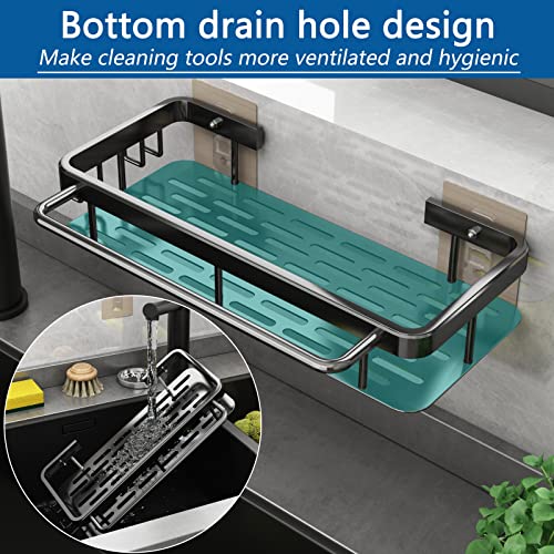 Autoadesivo Porta Spugne da Cucina, Organizer per Lavello in Alluminio, Nessuna Perforazione Richiesta da Cucina Cestino Portaoggetti con Ganci e Portasciugamani per Riporre Spugne Spazzole Detersivo
