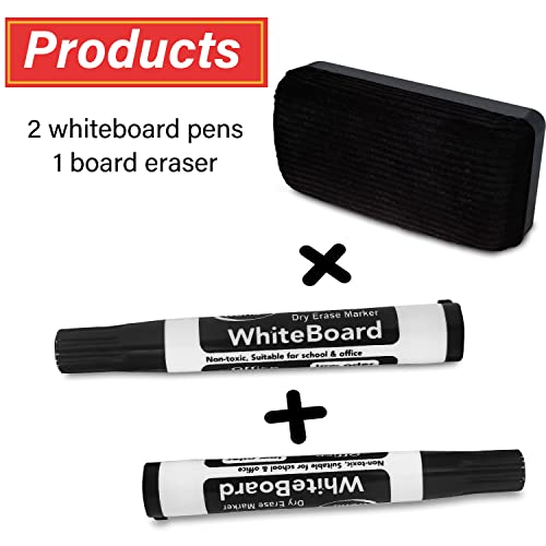 Kit Pennarelli: Include 2 neri pennarello lavagna cancellabili e 1 gomma da cancellare per lavagna bianca, perfetti per l'uso quotidiano a scuola, in ufficio e a casa.