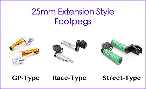 Include un paio di pedane per moto. Questa pedana aftermarket è più corta della pedana originale. La lunghezza è di 78 mm (3,1 ") per tutti i tipi. Il design è per evitare di colpire il suolo in curva. Dispone di 12 angoli regolabili per personalizzare la postura di guida