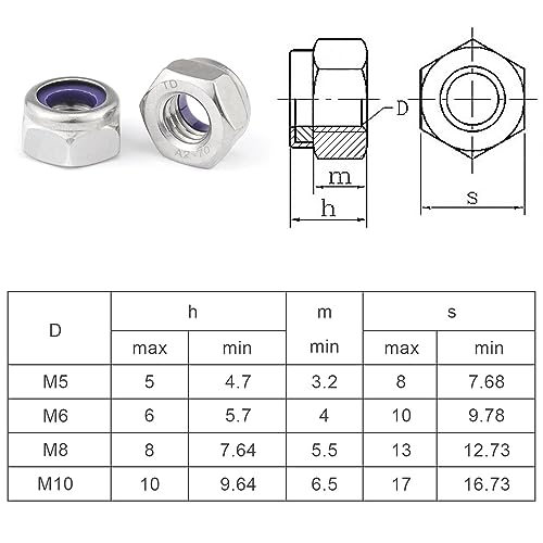Dadi Autobloccanti M10 DIN 985 Bloccanti Dadi Esagonali Acciaio Inox A2 V2A Dadi Autobloccanti (25 Pezzi)