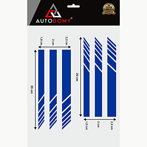 Autodomy Confezione Adesivi per Specchietti Retrovisori Car Stripes Strisce Design Confezione da 6 unità con Diverse larghezze per Auto (Blu)