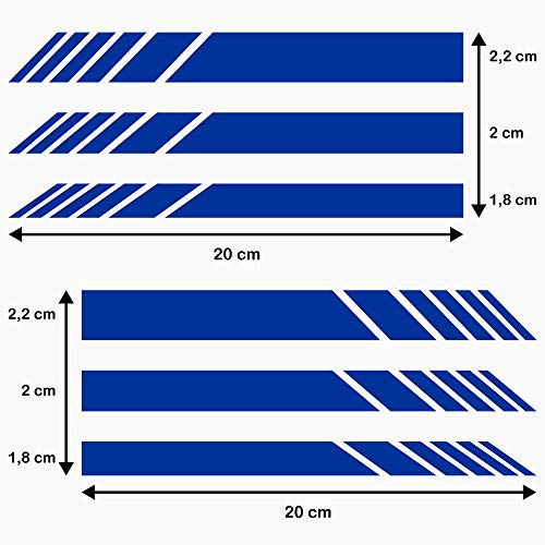 DIMENSIONE: Il confezione comprende 6 Stripes con 3 Stripes per ogni lato SIMMETRICO, 2 unità 20 x 2,2 cm, 2 unità 20 x 1,8 cm e 2 unità 20 x 1,5 cm.
