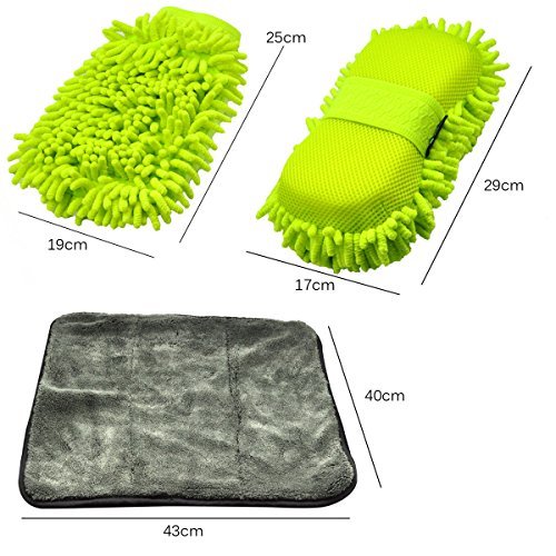 Combinazione perfetta: un set di lavaggio include un guanto ultra-morbido, una spugna di lavaggio e un panno in velluto che soddisfa pienamente il vostro bisogno per la cura dell'auto.