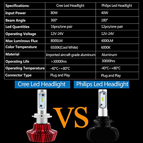 Confezione da 2 lampade: Grazie alla tecnologia csp ed i led cree, il fascio è più luminoso ed ampio, senza macchie scure. 3 volte più luminosi dei kit alogeni. 4000lm ogni lampada, 8000lm per coppia. Tecnologie avanzate per garantire massima luminosità in ogni condizione di guida e il massimo della sicurezza.