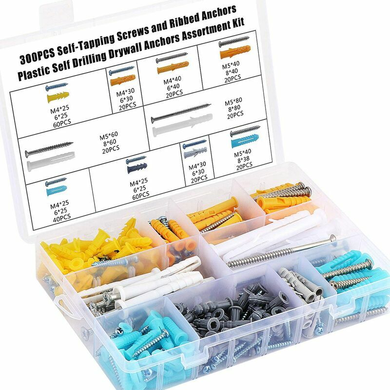 Viti di ancoraggio con confezione combinata di alto valore, custodia in plastica riutilizzabile, per appendere quadri, montare mensole, fissare ganci, binari per ganci e altri oggetti alle pareti. Set di ancoraggi/viti in metallo adatto per l'uso su piccoli progetti, pensili bagno/cucina, mensole, lampadari, specchi, cornici, ecc. questo assortimento contiene diversi tipi e dimensioni e le viti corrispondenti. Viti autoperforanti in metallo di alta qualità , Ancoraggi in materiale plastico, nessuna ruggine, resistenza alla corrosione, anti-invecchiamento, buona tenacità. L'assortimento di tasselli e viti è perfetto per pareti porose o fragili che normalmente non sopportano il peso di una singola vite. Sono facili da usare e sono ideali per lavori veloci in casa e al lavoro. Le nervature sugli ancoraggi in plastica impediscono all'ancora di ruotare nel foro durante l'installazione. Il kit di viti di ancoraggio per colonne per tubo di espansione in plastica include: 150 tasselli, viti