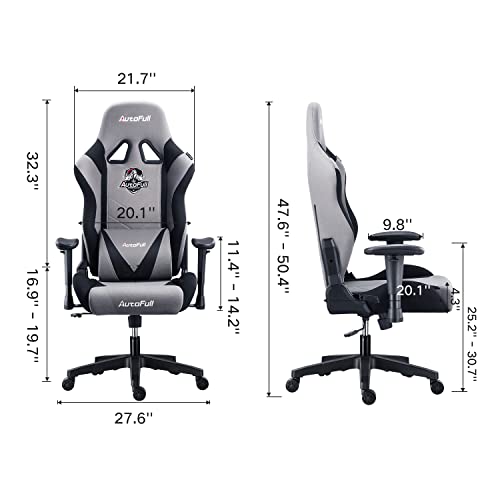 AutoFull - Sedia da gaming ergonomica da scrivania, con schienale alto e supporto lombare, sedia da lavoro in tessuto lycra mesh stile corsa con poggiapiedi, colore grigio
