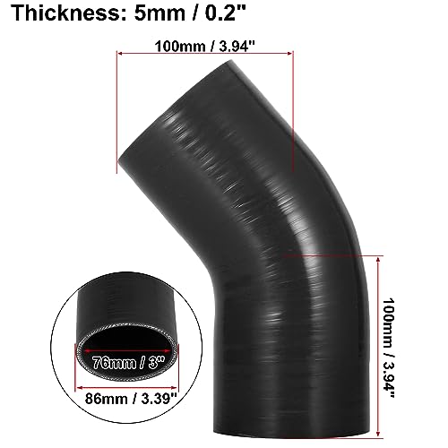 X AUTOHAUX Universale Auto 76mm 3" ID 45 Gradi Accoppiatore Silicone Tubo Nero