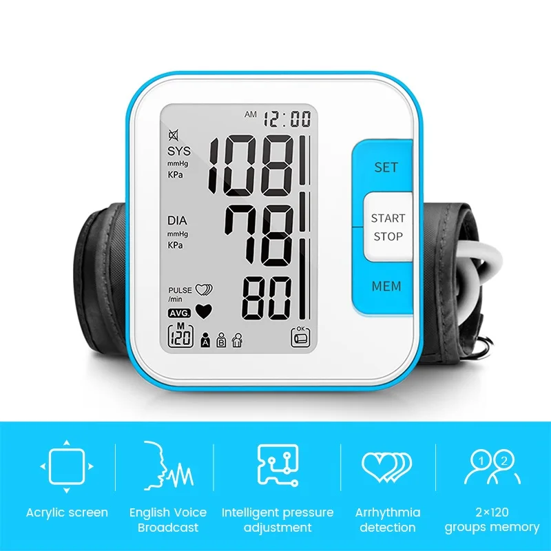Automatic Tonometer Upper Arm Blood Pressure Monitor LCD digital Electronic Sphygmomanometer for Measuring Arterial Pressure