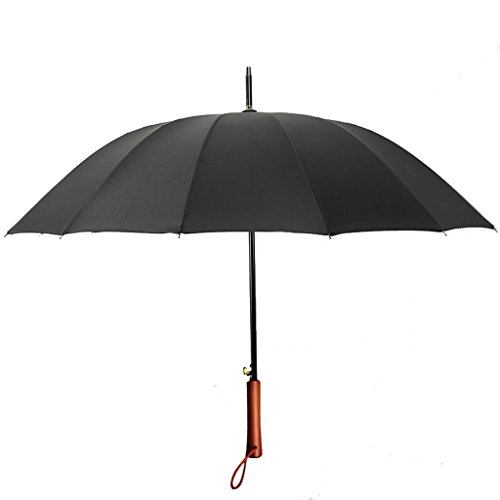 Automatico aperto in legno Strong Golf Resistente manico lungo ombrello con 16 costole antivento Protezione solare Ombrelli da esterno per uomo e donna (Colore: Nero)