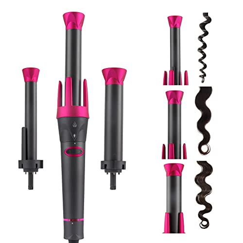 Automatico Ferro Arricciacapelli 3 in 1Professionale Ceramica Arricciacapelli Diverso Diametro Intercambiabile Riscaldamento Rapido, 3 Temperatura Regolabile 380° F-450° F (spina UE)