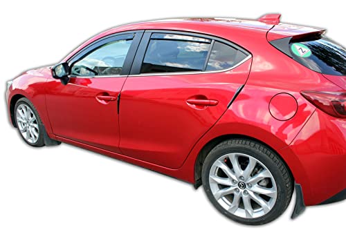 Deflettori D'Aria Antiturbo su misura per Mazda 3 5 Porte Berlina 2013-2018, Non si adatta per 4 porte berlina, Confezione da: Set di 4 Pezzi, Anteriore E Posteriore