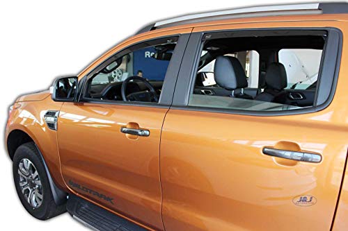 J&J AUTOMOTIVE | Deflettori d'Aria Antiturbo per Ranger T6 Porte dal 2012, Set di 4 Pezzi, Anteriore E Posteriore, Nero, Antivento, Antipioggia, Fume' Oscurati, Aerodinamico