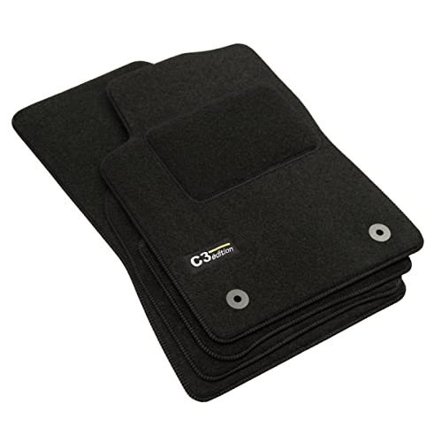 J&J Automotive | Tappetini In Tessuto In Velluto Con Logo Su Misura Adatti Per C3 dal 2017,4 Pezzi, Anteriore E Posteriore, Nero, Antiscivolo