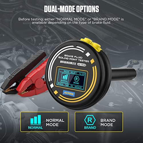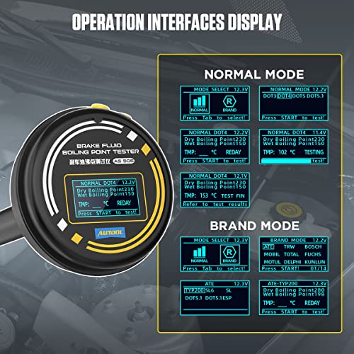 【Test rapido e doppia modalità】 AUTOTOOL AS506 può ottenere risultati di test accurati in soli 16 secondi, non è necessario utilizzare stick di prova consumabili, economico ed efficiente. Prima del test, è possibile selezionare "MODALITÀ NORMALE" o "MODALITÀ MARCA" in base al tipo di liquido dei freni (si prega di leggere la descrizione del prodotto di seguito per le fasi operative dettagliate).