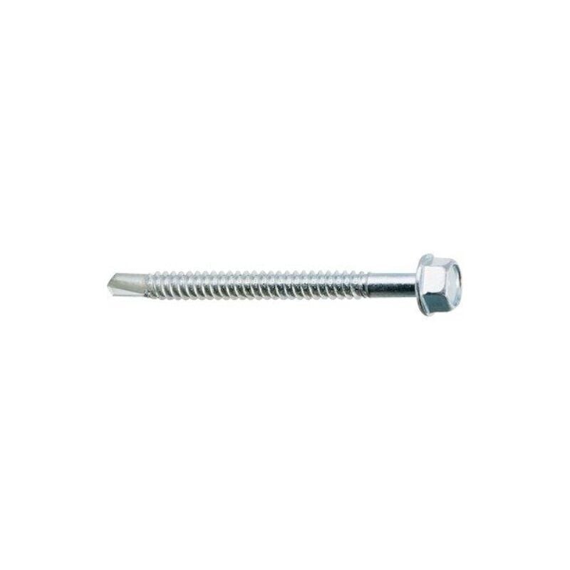 Vite autoperforante metallo ambrovit Tecc zincata bianca mm 6,3x 70 cf=pz 100 in acciao al carbonio c1022 temperato. con testa esagonale e finta rondella piana. con finitura zincata bianca.