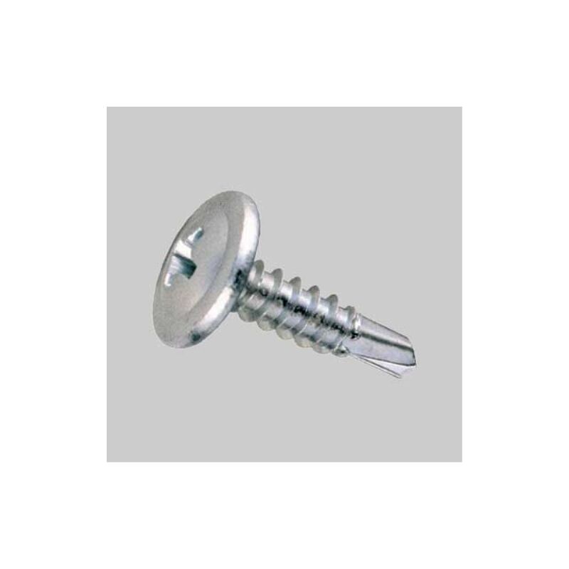 In acciaio zincata. Cava a croce PH. Con testa piatta e larga, Š particolarmente indicata per il fissaggio di canaline elettriche, barre omega, pannelli sottili in legno o plastica su strutture metalliche, intelaiature di contropareti di cartongesso, carpenteria leggera, prefabbricati in lamiera. Vite autoperforante tmt ranellata 4,2x19 mm AMBROVIT Viti e bulloneria in acciaio zincato ambrovit