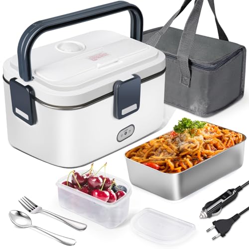 AUTOPkio 1.8L Scalda Vivande Portatile Elettrico, 12V/24V/220V 3 in 1 Porta Pranzo Riscaldabile con Borsa e Estraibile Contenitore Acciaio Inox Portavivande Termico per Auto Ufficio Camion Casa
