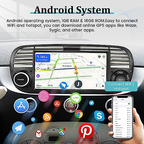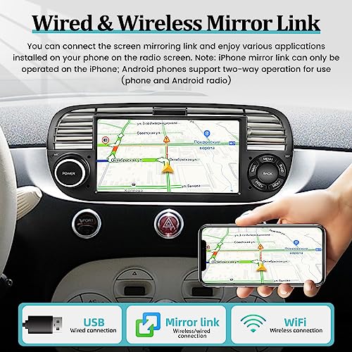 WiFi e Navigazione GPS: Autoradio Fiat 500 supporta la connessione WiFi, mappa offline incorporata, primo utilizzo è necessario connettere WiFi per scaricare la mappa della zona. Supporta anche il download del software di navigazione online.