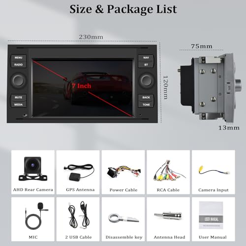Autoradio Android 13 per Ford Focus/C-max/S-max/Galaxy/Fusion/Transit Connect con Android Auto Carplay, radio touchscreen 7" con Mirrorlink BT WIFI GPS FM/RDS EQ SWC + telecamera di retromarcia&mic