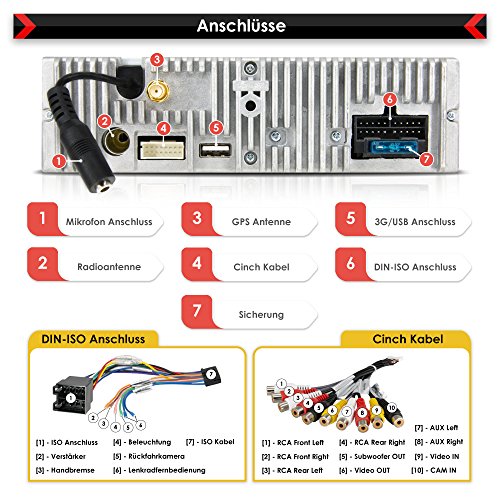 ✔ 17,8 cm (18 cm) estensibile capacitivo multi-touch screen con risoluzione 1024 x 600 | 200 W (4 x 50 W) | Radio con funzione RDS | Antenna DAB + radio digitale (possono essere ordinati separatamente) | Lettore DVD | 2 x slot micro SD per navigatori satellitari e i file audio/video | USB anteriore e posteriore | Audio e video in/out per dispositivi esterni come lettore DVD nel poggiatesta, DVB-T2 TV ecc. | RGB button-colours | Camera Connection | supporto controllo del volante.