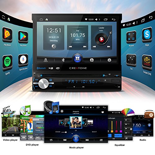 Autoradio Android Creatone amg-1201 | 1 DIN Naviceiver con schermo regolabile | GPS con mappe europee di ultima generazione con radar avvertimento | radio digitale DAB + | DVD | touchscreen 17,8 cm (18 cm) | USB a TB | Quad-Core 64-bit CPU Intel Atom X3 4 x 1, 2 GHz | 16 GB | Full HD 1920 x 1080 Video supporto integrato | wireless LAN | Bluetooth® con iOS e Android | Mirrorlink | OBD 2 | RDS