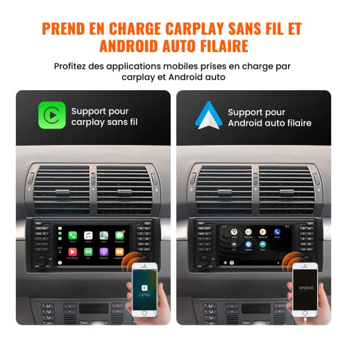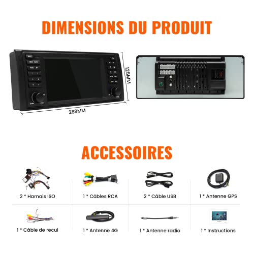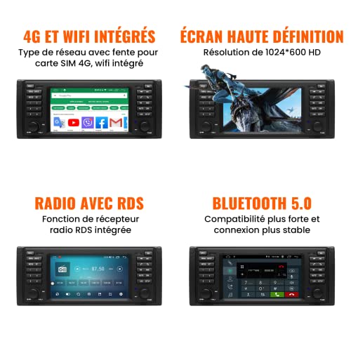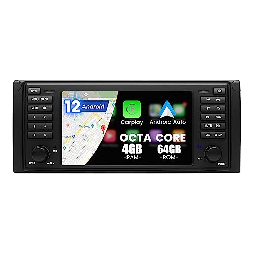 Autoradio Android 12 Kymmtun per BMW X5, E53, E39 - Touch screen da 7" (4GB + 64GB) - Wireless Carplay - GPS/4G+WiFi/USB/FM/AM/DSP/SD/Bluetooth - Controllo al volante