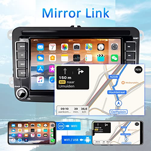 Autoradio Android con Navi per VW, Touch Screen da 9 Pollici GPS Navigazione Supporto WIFI Bluetooth Dual USB Mirror Link + Telecamera Posteriore & DAB Modulo