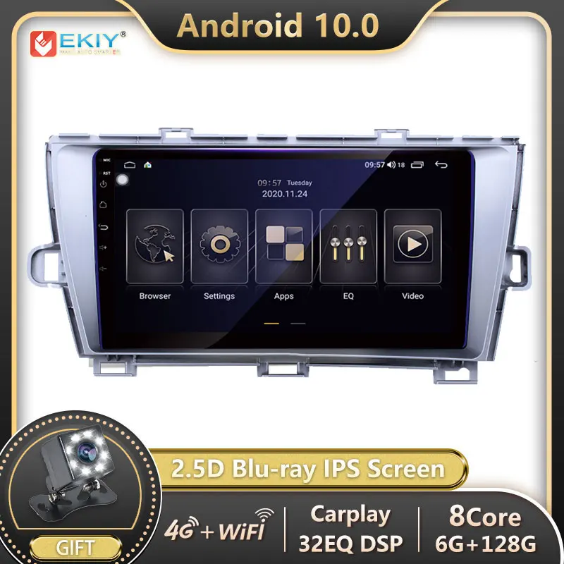 EKIY IPS DSP 2 din Autoradio Android 10 For Toyota Prius LHD RHD 2009-2013 Car Radio Multimedia Video Player Navi GPS Stereo DVD