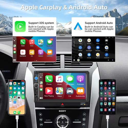 Autoradio 2 Din con Apple Carplay Android Auto Bluetooth Vivavoce 7 Pollici Touchscreen Autoradio con Mirror Link Bluetooth FM Radio USB/AUX/TF Controllo del Volante + Telecamera Posteriore Microfono