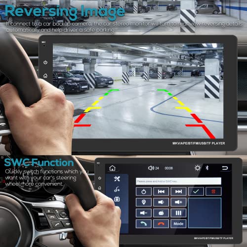 3️⃣ 【Bluetooth & Radio FM & Telecomando】 L'autoradio con touch screen carplay da 1 din funziona con Bluetooth, supporta la risposta e effettua chiamate in vivavoce, riproduce la musica in modo intelligente. Autoradio bluetooth 1 din, supporta radio FM, con 18 stazioni preimpostate, puoi ascoltare traffico in tempo reale, notiziari, previsioni del tempo, ecc.