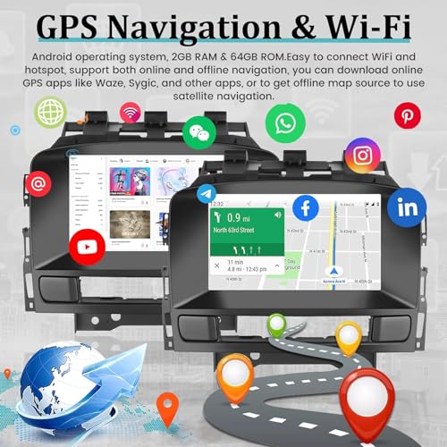 【Potente Sistema Android】Ultimo sistema operativo Android, 2GB RAM e 32GB ROM, garantisce un'operazione fluida e una risposta più rapida. Facile connessione WiFi e hotspot, supporto per la navigazione online e offline, puoi scaricare app GPS online come Waze, Sygic e altre app, o ottenere una fonte di mappe offline per utilizzare la navigazione satellitare.