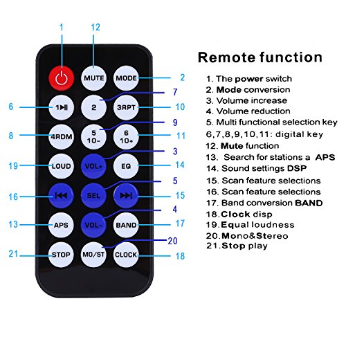 FUNZIONI SUPPORTATI - Autoradio comprende ricevitore FM e bluetooth, supporta funzione radio, connessione bluetooth e con cavo AUX, trasmettere canzoni da scheda SD o dalla pennetta. Anche ci sono diverse modalità di stile musicale da scegliere: FLAT, CLASS, ROCK, POP. Con un Telecomando regolato nella confezione, utente potrebbe operare il prodotto in modo più conveniente.